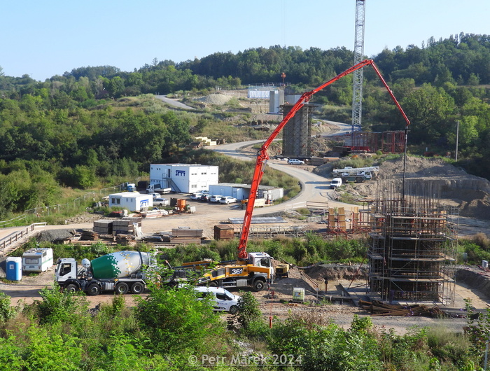 Probíhající stavební práce v měsíci srpnu 2024 na stavbě obchvat a přemostění obce Žiželice, stavební práce probíhají dle harmonogramu