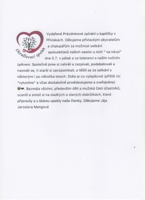 Úvod > Fotogalerie > Rok 2019 > Zpívání u kapličky - Přívlaky
